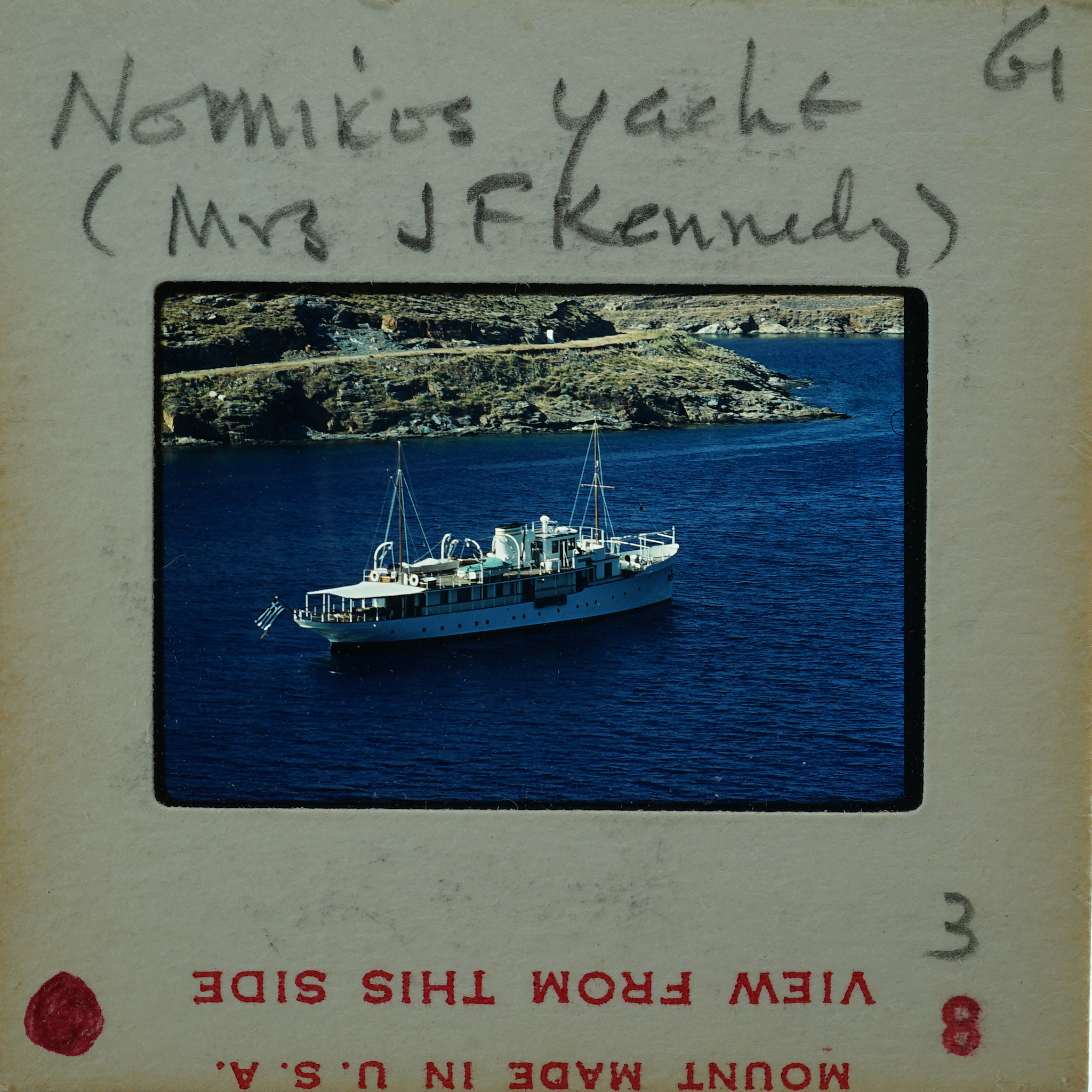- Frame inscribed: Nomikos Yacht (Mrs J F Kennedy) 3 61.