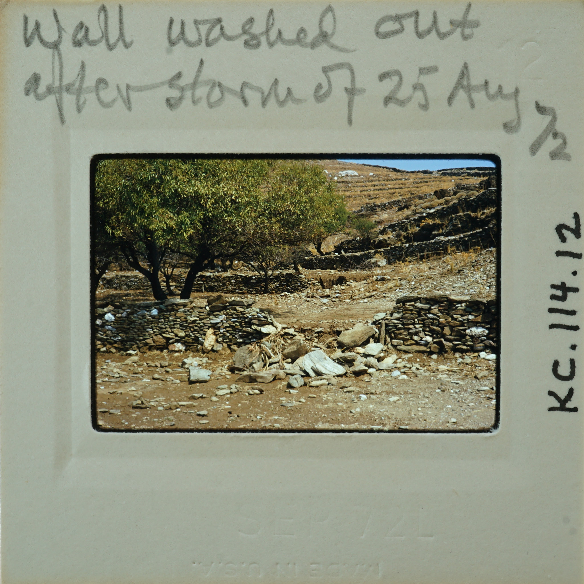 - Frame inscribed: Wall washed out after storm of 25 Aug 72 KC.114.12.