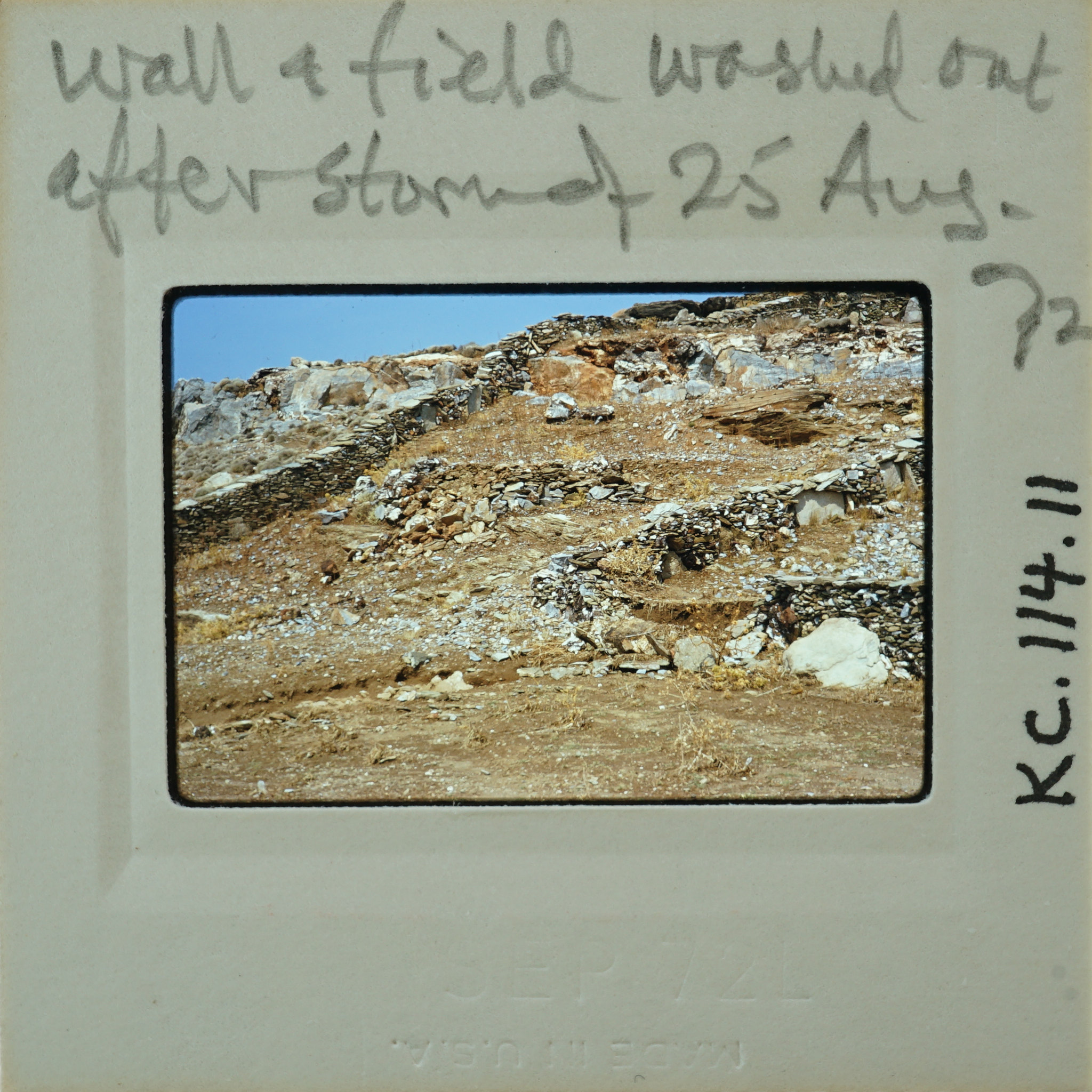 - Frame inscribed: Wall + field washed out after storm of 25 Aug 72 KC.114.11.