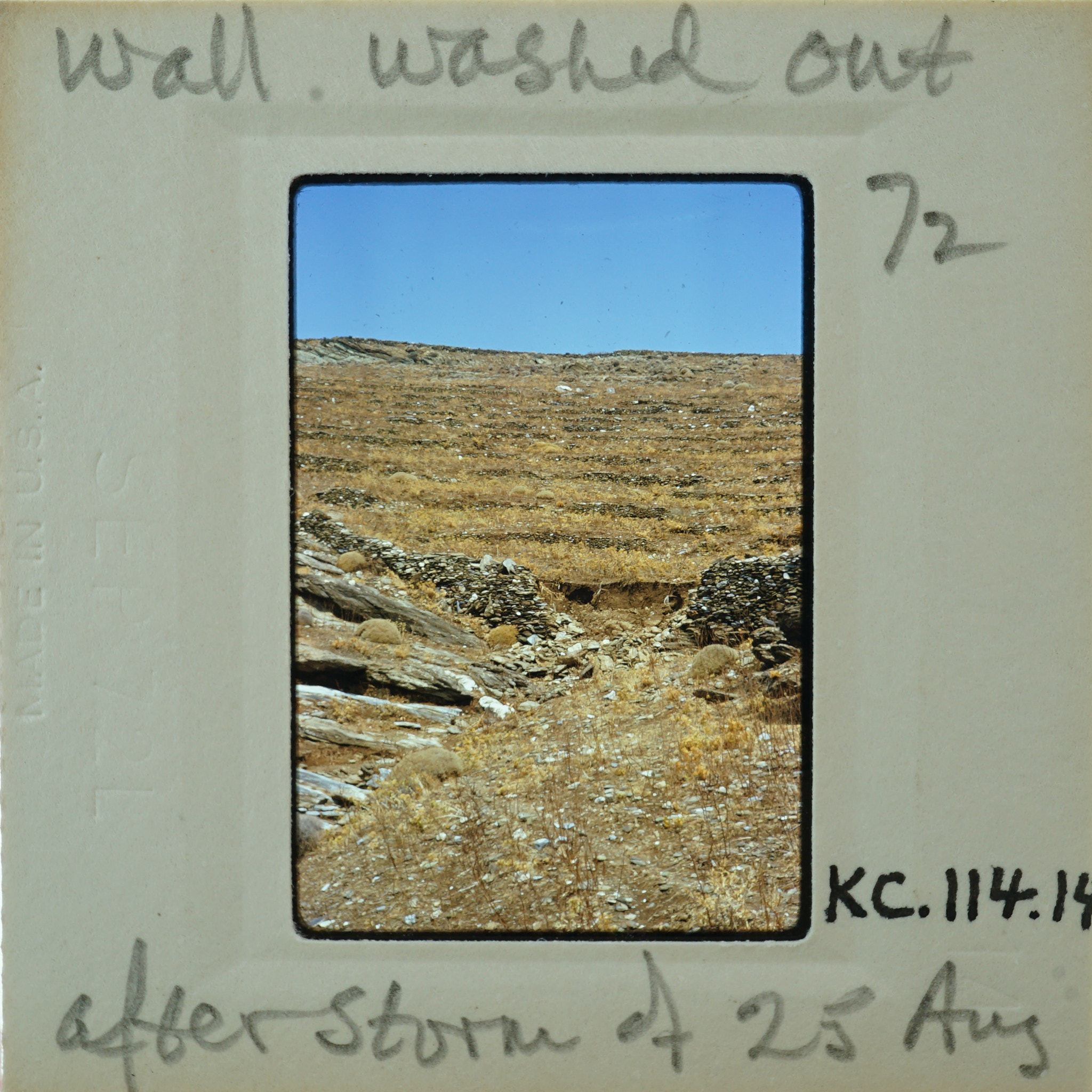 - Frame inscribed: Wall washed out after storm of Aug 25 72 KC.114.14.