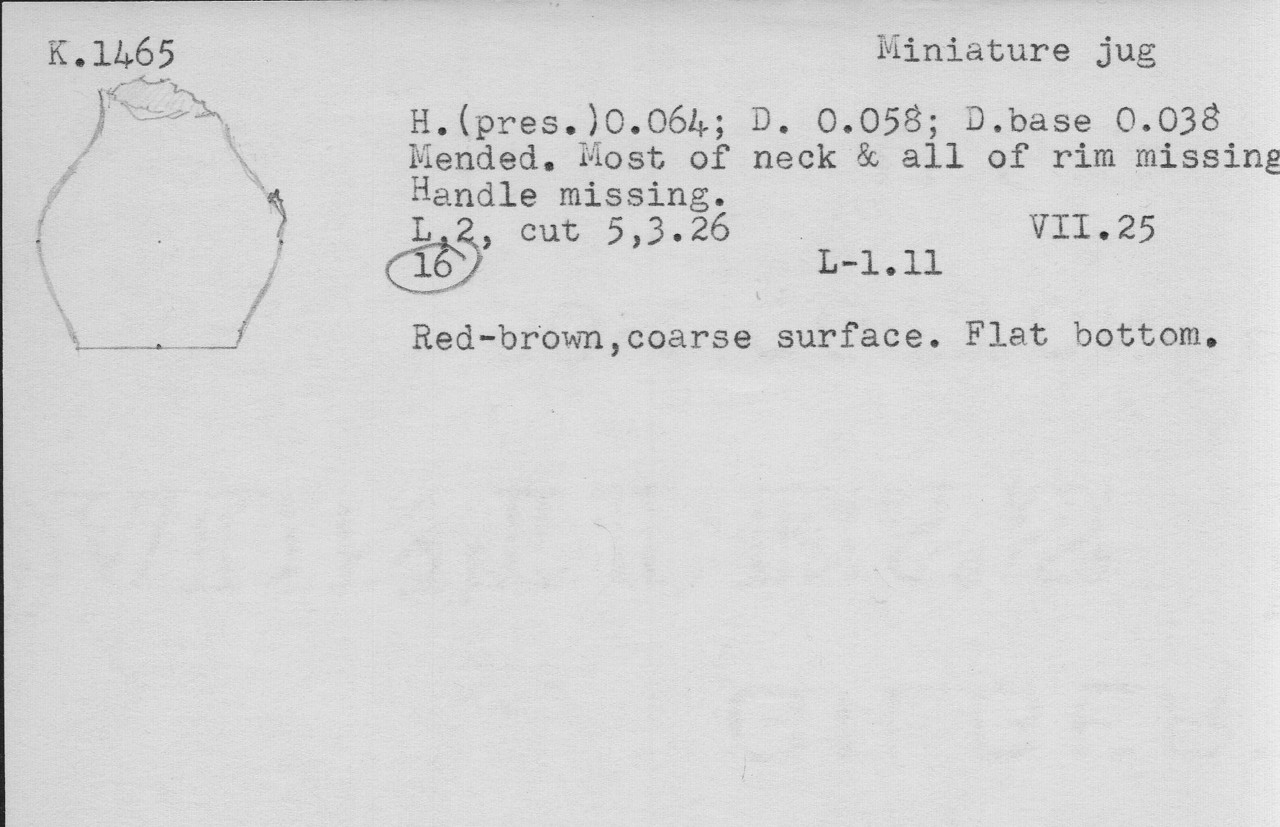 Red-brown, coarse surface. Flat bottom.