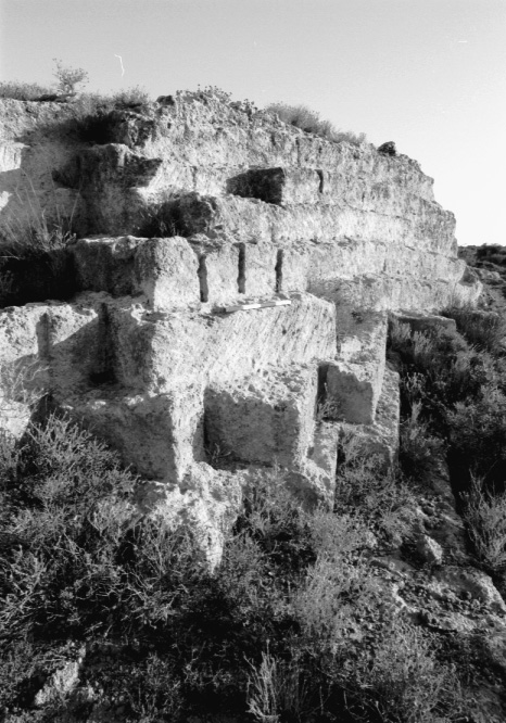 Unedited/Preliminary Label From dirt road S of Gargaliani leading to Profitis Ilias: close-up of quarry cutting with scale (vertical shot).