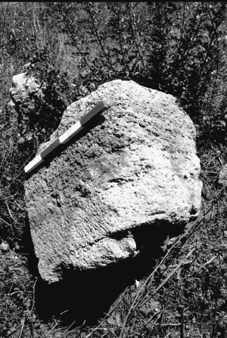 Unedited/Preliminary Label Site D01, Kanalos: close-up (with scale) of cut stone block on E acropolis
