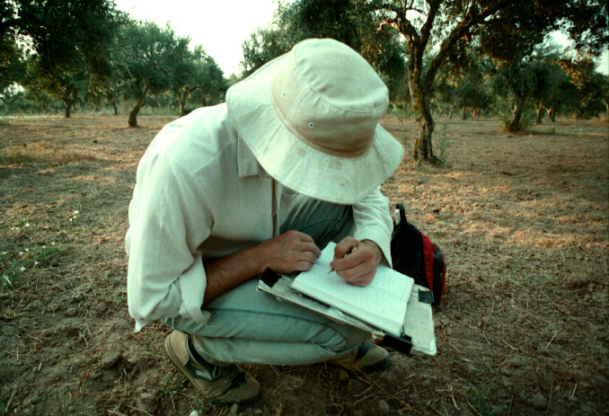 Unedited/Preliminary Label D team working in area E of Marathopolis 6/8/93: Extreme close-up of Nigel Spencer (TM#32) writing in notebook