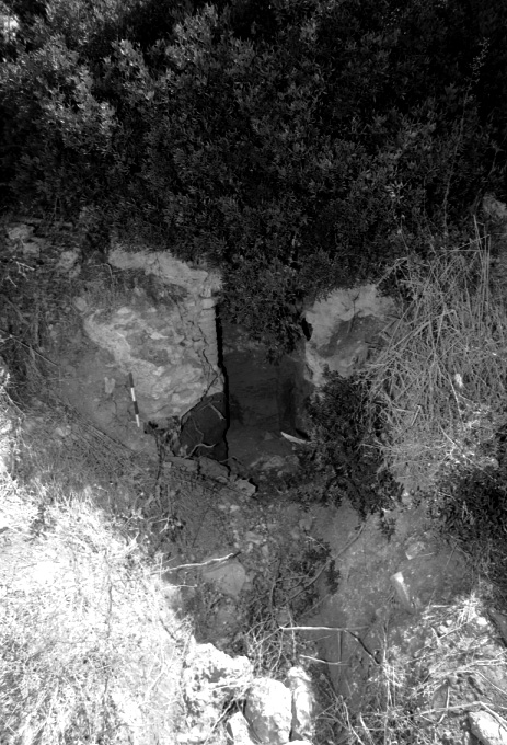 Unedited/Preliminary Label Site G01, Dialiskari: close-up (with scale) of "illicit" excavation of hypocaust