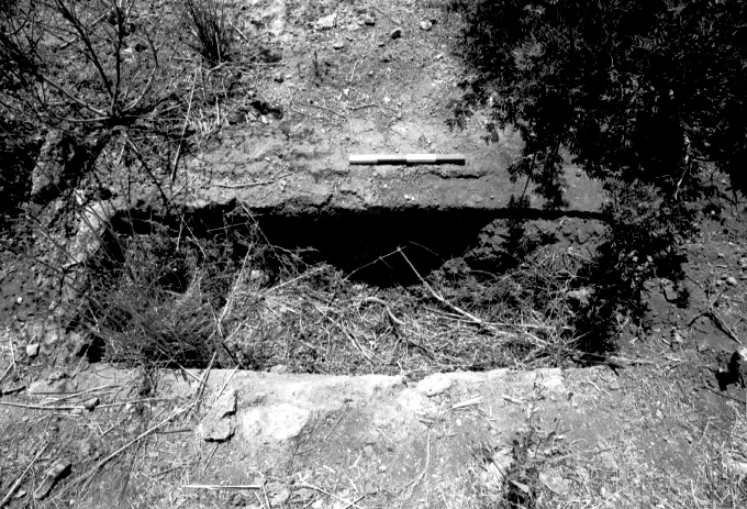 Unedited/Preliminary Label Site D01, Kanalos: close-up (with scale) of cist grave on top of acropolis (W side)