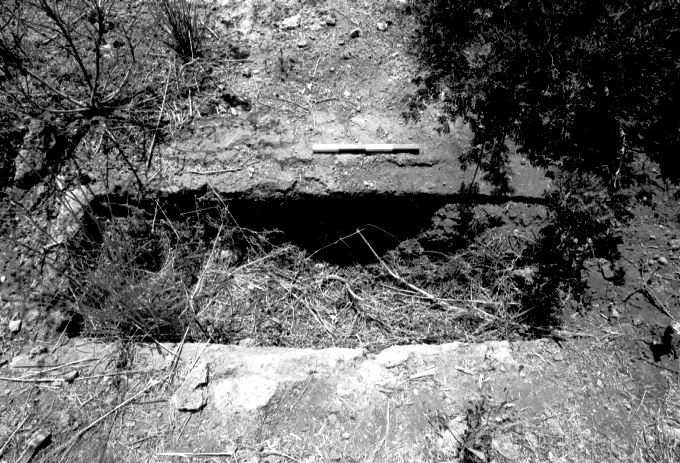 Unedited/Preliminary Label Site D01, Kanalos: close-up (with scale) of cist grave on top of acropolis (W side)