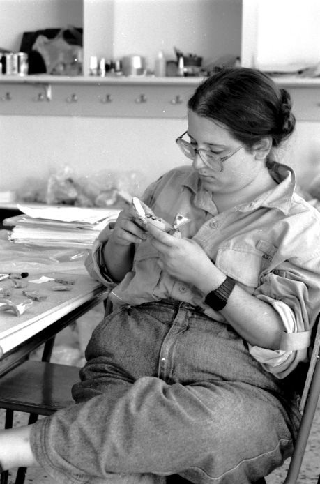 Unedited/Preliminary Label Hora School House 6/8/93: Laura DeLozier (TM#46) mending pot at pottery table