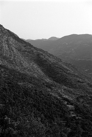Unedited/Preliminary Label Metexada Valley: from Forest Police road, near end of road, view to E slopes of Aigaleon range above Kalopsana (check dams)