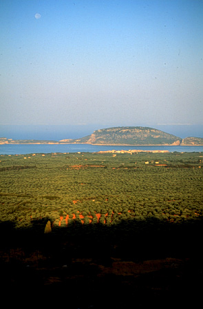 Unedited/Preliminary Label From Gargaliani scarp: view showing Sites D01 (Kanalos) and D02 (Megas Kambos (1)), Marathopolis and Proti - vertical shot