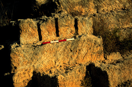 Unedited/Preliminary Label Medieval quarry S of Gargaliani: detail of vertical drilled holes in quarry face