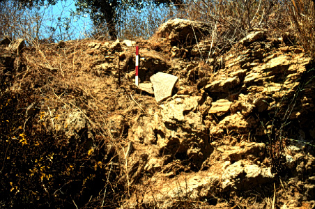 Unedited/Preliminary Label Site D01, Kanalos: slightly wide-angle view of tile grave on S side of acropolis, with scale