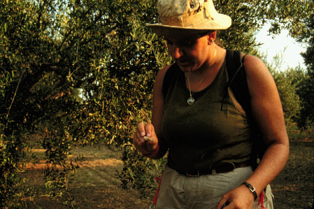 Unedited/Preliminary Label D team in area E of Marathopolis 6/8/93: close-up of Holly Oyster (TM#62) inspecting artifact