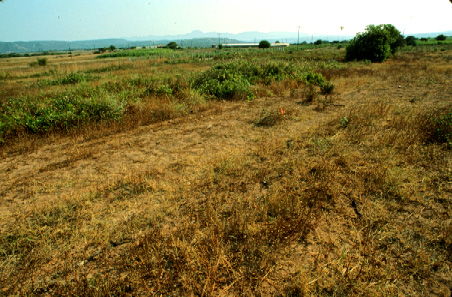Unedited/Preliminary Label In region W of Romanou: general view to ENE over Site E01, Glyfadaki, showing site center flagged with tape
