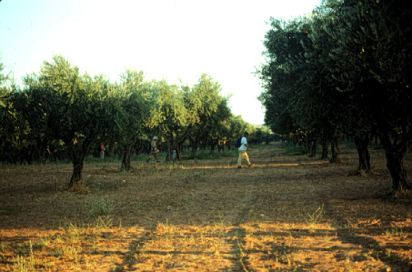 Unedited/Preliminary Label E team: (6/8/93) working in area immediately N of Kokevis estate, View of team in middle of tract in olives