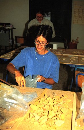 Unedited/Preliminary Label In and around Hora School house: Ann Harrison (TM#52) re-bagging studied pottery