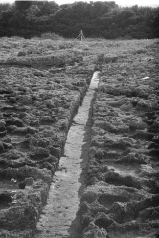 Unedited/Preliminary Label Site G01, Dialiskari: Looking E along salt pan channel with machine