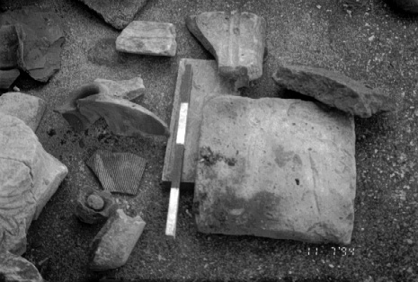 Unedited/Preliminary Label Site G01, Dialiskari: Antiquities collection behind house at Dialiskari, subsequently collected with Ephoria permission. Includes pithoi, amphorae, marble column fragments etc.