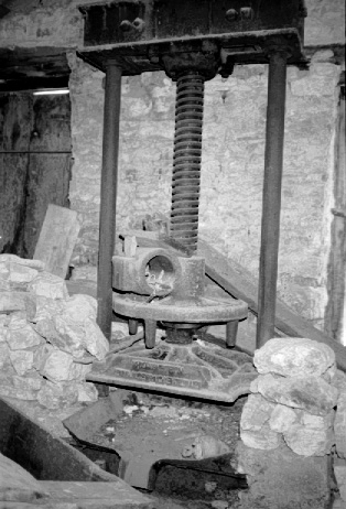 Unedited/Preliminary Label Last stage oil press. Turn screw type, also in family oil press building [Maryeli]