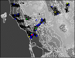 Legend:Black is 0; Blue is 1;Green is 2-5; Yellow is 6-9; Red is >10.